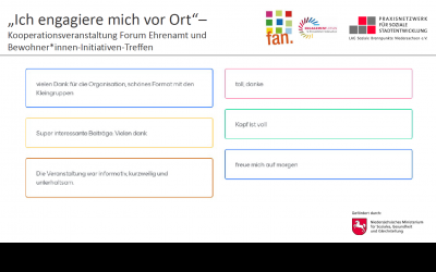 Am 20. und 21. November 2020 fand ein besonderes Bewohner*innen-Initiativen-Treffen zum Thema „Ehrenamt - Ich engagiere mich vor Ort“ statt. Zum ersten Mal musste das Treffen aufgrund der aktuellen...
