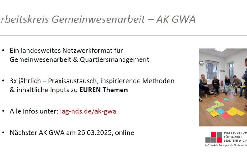 Beim landesweiten Austauschtausch Arbeitskreis Gemeinwesenarbeit könnt ihr euch dreimal im Jahr zu den Themen, die euch in euren Quartieren beschäftigen mit Kolleg*innen austauschen, praxisnahe Lösungen entwickeln und gemeinsam Strategien für eure Arbeit vor Ort finden.