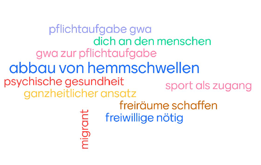 Noch dazu gab es die Möglichkeit sich in Kleingruppen unter den Teilnehmer*innen auszutauschen, was vor Ort in den Quartieren bereits zum Thema Gesundheit gemacht wird und was in diesem Bereich gut funktioniert und wo es noch Handlungsbedarf gibt.