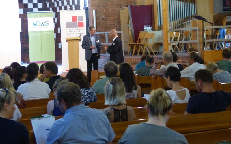 Hitze und Bahnstörungen - nichts konnte heute die zahlreichen Teilnehmerinnen und Teilnehmer daran hindern, sich im Stadtteil Hannover-Sahlkamp konzentriert dem Thema „Gesundheit im Quartier: zum Greifen nah!“ der Fachtagung der Landesvereinigung für Gesundheit und Akademie für Sozialmedizin Niedersachsen e. V. (LVF AFS) und der Landesarbeitsgemeinschaft Soziale Brennpunkte Niedersachsen e. V. zu widmen.