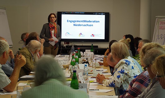 Ende Mai fand die Gründungsversammlung des Landesverbandes EngagementModeration in Hannover statt. Mehr als 30 Mitglieder fanden sich zu diesem Anlass, der Vorstand rechnet mit schnellem Zuwachs. Gibt es doch schon über 600 ausgebildete "Engagementlotsen" und zahlreiche "Dorfmoderatoren" in Niedersachsen. Dazu sind landesweit ebenfalls qualifizierte Eltern- und Integrationslotsen und Elternbegleiter/innen aus Rucksack und Griffbereit in den Stadtteilen für das Gemeinwesen tätig. Sie alle vereint, dass sie sich mit großem Engagement in und für ihr Umfeld einsetzen. Sie besuchen Schulungen, übernehmen Verantwortung und regelmäßige Aufgaben.