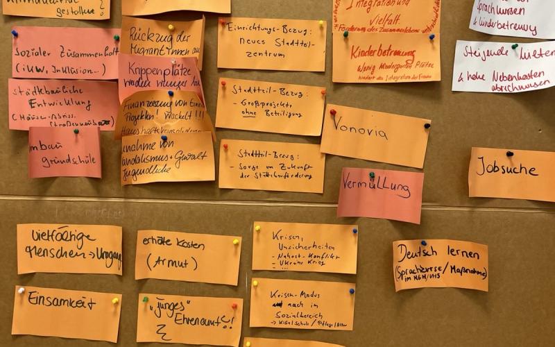 Dazu starteten wir mit einer Vorstellungsrunde mit einer Sammlung von Themen die die Bewohner*inne aus euren Quartieren gerade vor Ort bewegen. Das waren ua.: