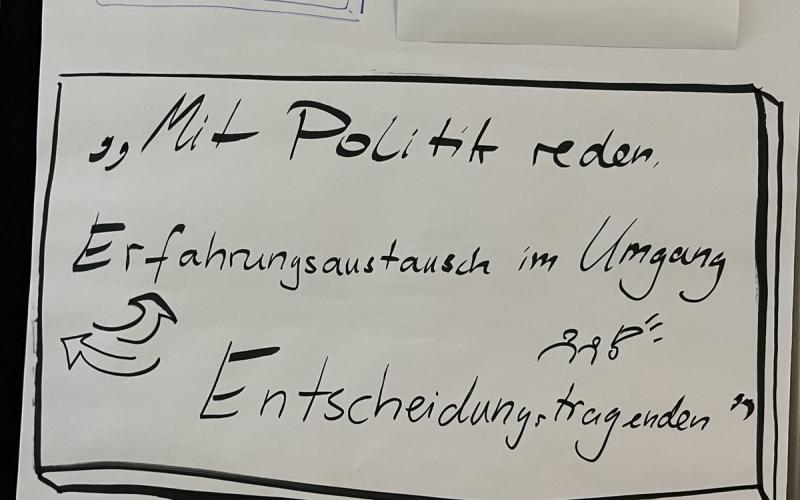 Und tauschten uns zu Strategien aus, wie wir Brücken schlagen können, dass Menschen selber für ihre Interessen sprechen können:
