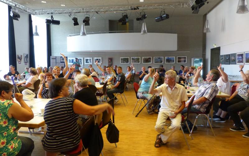 Nach einer Abstimmung haben wir in großer Runde am Thema „Wie bekommt man alle an einen Tisch?“ weitergearbeitet.