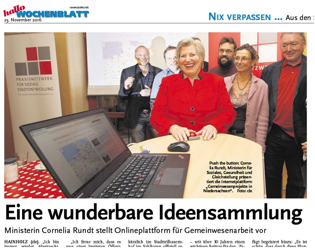Eure und Ihre Vielzahl an großartigen Gemeinwesenprojekten in Niedersachsen ist von nun an einer breiten Öffentlichkeit zugänglich. Und weitere Projekte können von jetzt an eingegeben werden!