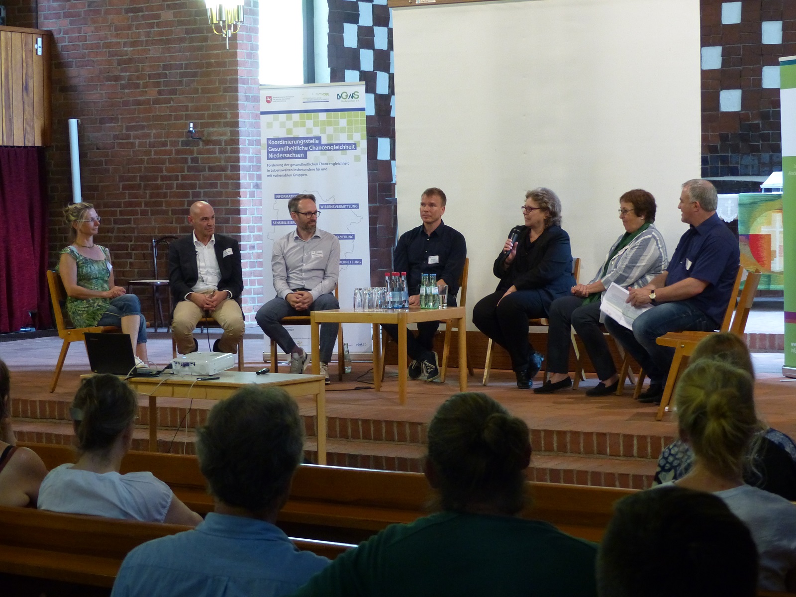 Am 18. Juni 2019 kamen rund 140 Besucher*innen sowie 50 Stadtteilakteure zusammen um sich mit dem Thema Gesundheitsförderung im Quartier zu befassen. Bei der Fachtagung der Landesvereinigung für Gesundheit und Akademie für Sozialmedizin Niedersachsen e. V. (LVF AFS) und der Landesarbeitsgemeinschaft Soziale Brennpunkte Niedersachsen e. V. waren Menschen aus den Bereichen Quartiersmanagement, Gemeinwesenarbeit, Stadtteilentwicklung, Soziale Arbeit und Gesundheit sowie Krankenkassenvertreter*innen und weitere am Thema Interessierte aus ganz Niedersachsen.