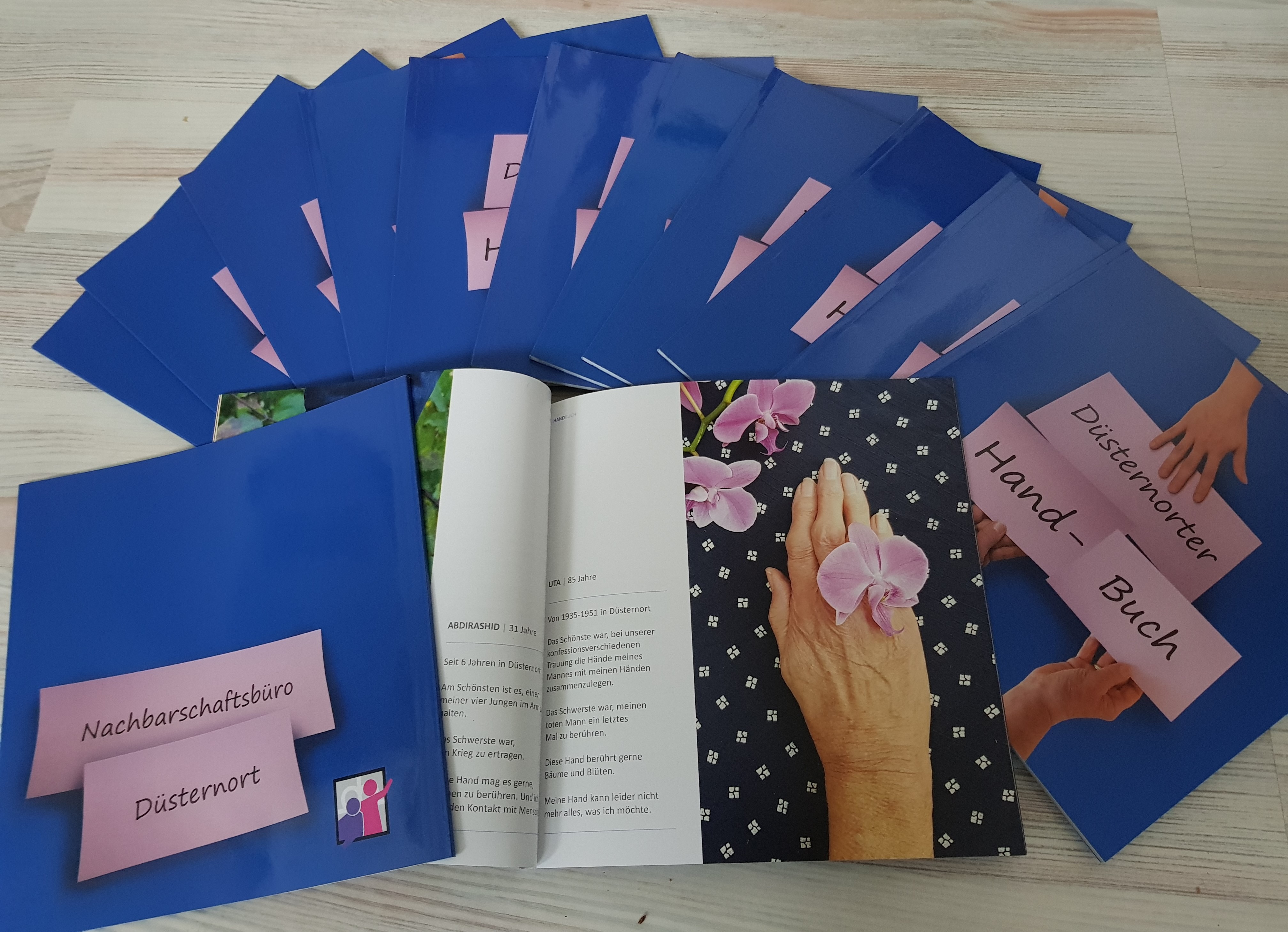 Ein Hand-Buch im wahrsten Sinn wurde erstellt: 30 Fotos von Händen, die verbindet, dass die Menschen im Delmenhorster Stadtteil Düsternort wohnen oder hier aufgewachsen sind.