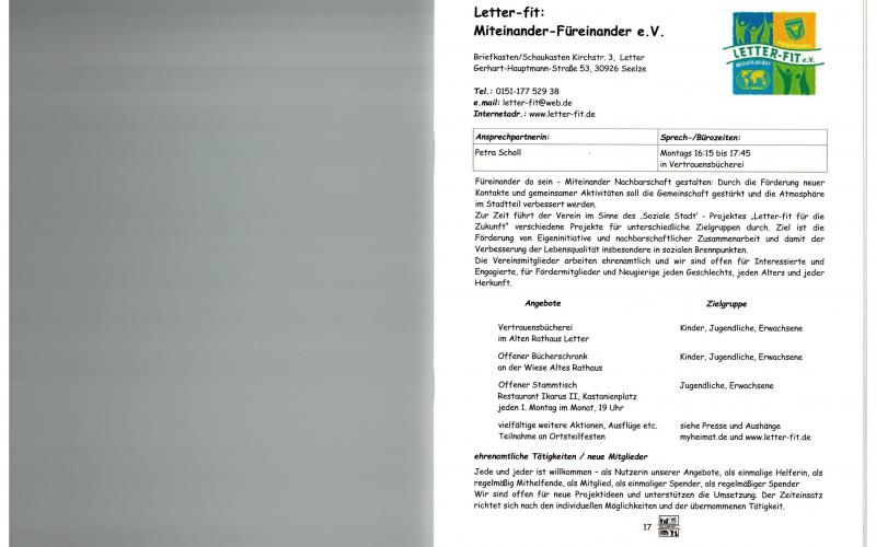 Diese Broschüre ist ein Projekt des Vereins „Letter-fit: Miteinander-Füreinander“ e.V.. Nach einer Vorauflage 2003 als Blattsammlung und dem ersten Heft 2006 nun die dritte Auflage. Der Eintrag in die Broschüre sowie die Broschüre selbst sind kostenlos.