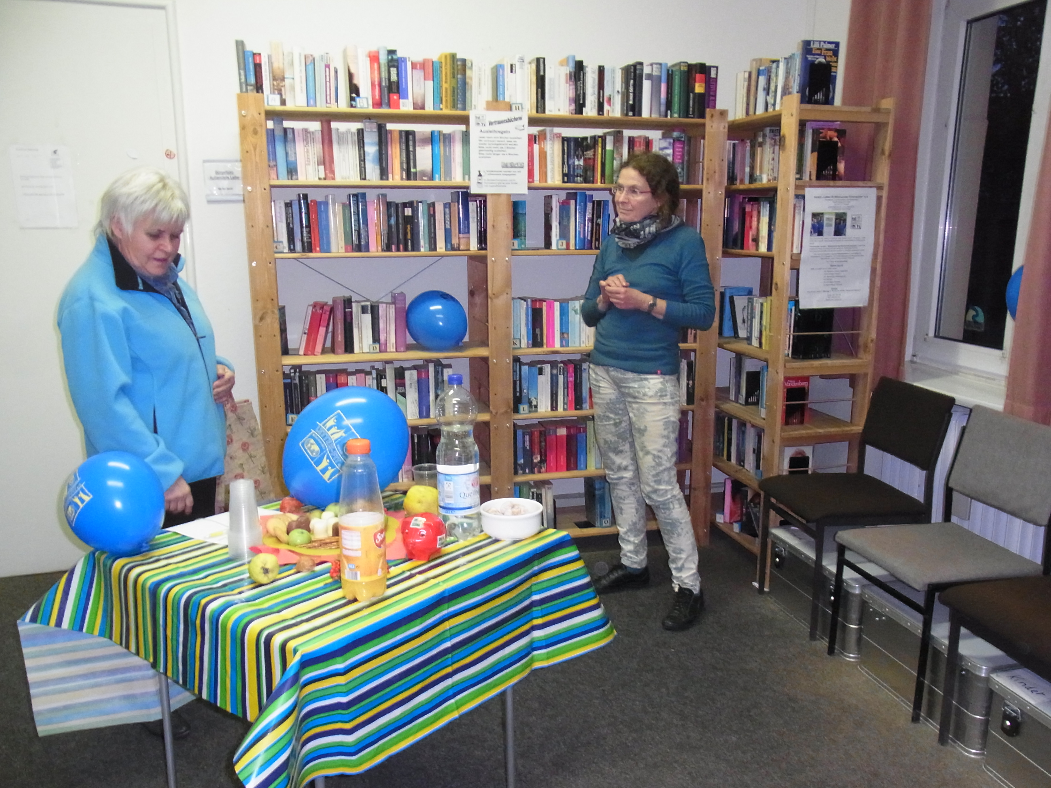 Die Bücher sind Spenden aus der Bevölkerung. Auf den Bildern, jeweils der Zeitpunkt der Einweihung, sieht es recht leer aus. Tatsächlich haben wir das Problem mit viel zu viel Bücherspenden. Viele haben wir schon weiter gegeben. Tatsächlich sind wir derzeit mit dem Platz sehr eingeschränkt, so daß die Bücher inzwischen zweireihig stehen und wir uns von Bild-, Kunstbänden und Fachbüchern trennen mußten.