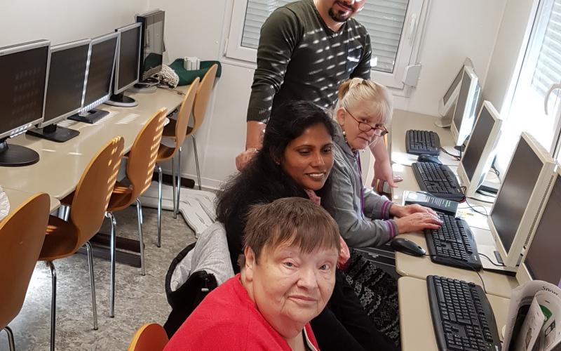 Es bestand großer Bedarf und große Nachfrage nach Fortbildungen im Bereich Computer. Nun macht ein syrischer Flüchtling mit vier älteren Damen jeden Samstag von 15.00 Uhr bis 16.30 Uhr den Unterricht. Die Teilnehmer kommen aus Polen, aus Russland, aus Afghanistan und aus Deutschland. Dieses Projekt findet einen sehr großen Anklang. Die Leute sind mit sehr viel Elan und Freude dabei.