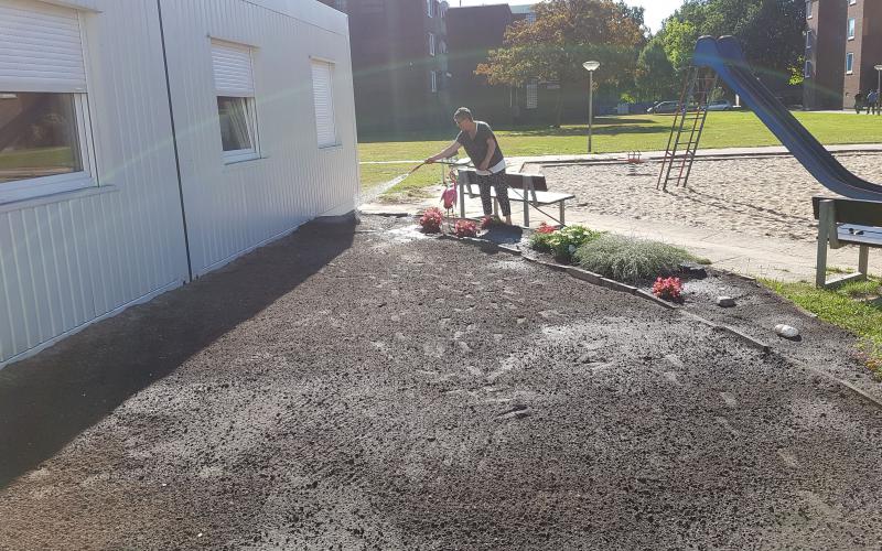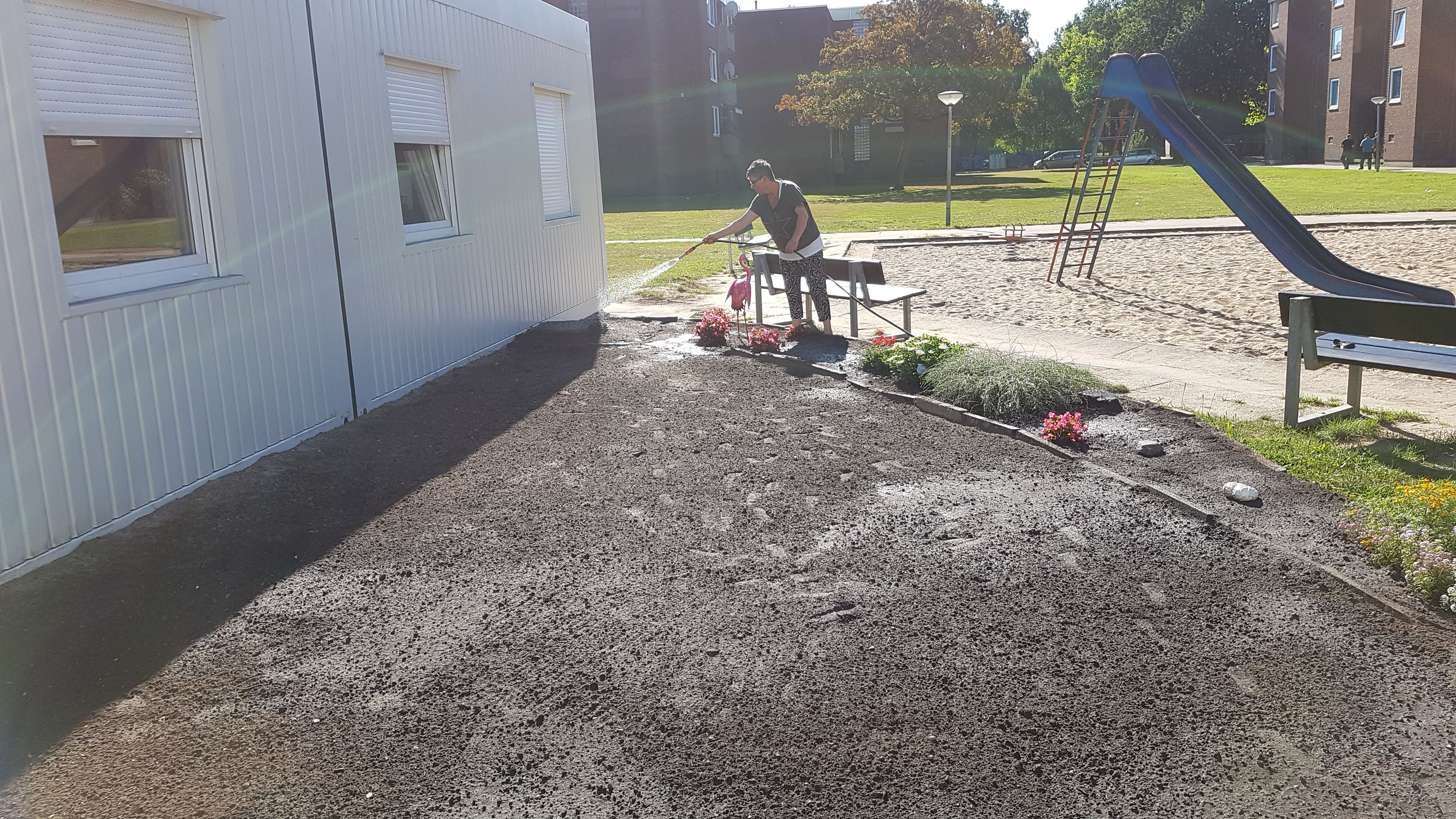 Beim gemeinsamen Arbeiten festigen sich die Deutschkenntnisse. Der Zusammenhalt der Bewohner wird gefestigt.