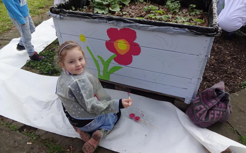Nun ist der Palettengarten schon vor der Vegetation erblüht. 25 Kinder haben eifrig gemalt und viel Spaß daran gehabt. Teilweise war es etwas unübersichtlich. Das Ergebnis kann sich sehen lassen. Die Kinder sind zurecht stolz.
