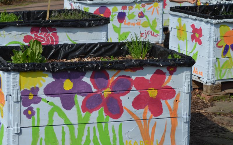 So ließen sich mit der Bemalung des Palettengartens zwei Dinge verbinden: Begegnungsmöglichkeit und Verschönerung.