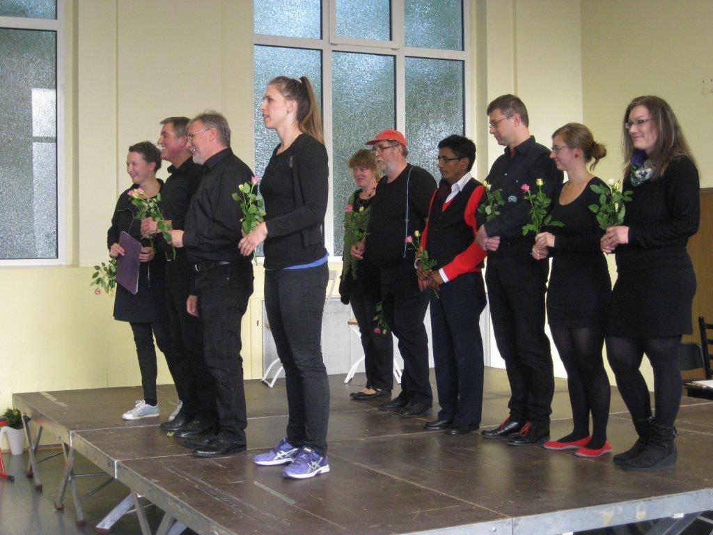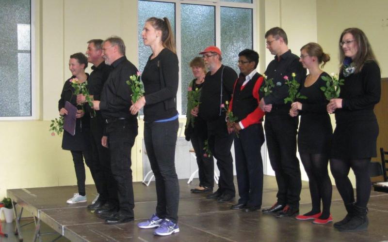 Theatergruppe mit Bewohner/innen aus dem Quatier Rosenplatz