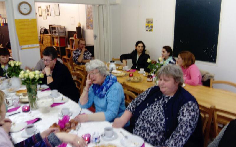 Unser Anliegen war es, den Status der Frau international anzuheben. Was heißt das? In vielen Ländern unserer Erde ist die Frau dem Mann nicht gleichgestellt. Wir wollten in gemütlicher Atmosphäre aufzeigen, daß es anders geht. Hierzu haben wir am 8. März zu einem Kaffee-und Kuchennachmittag eingeladen, der rege besucht wurde. Frauen aus 6 Nationen nahmen daran teil. Eine ehrenamtliche Mitarbeiterin sprach über die Entstehung des Weltfrauentages. Anschließend fand ein reger Austausch über die Dinge des Alltags statt.