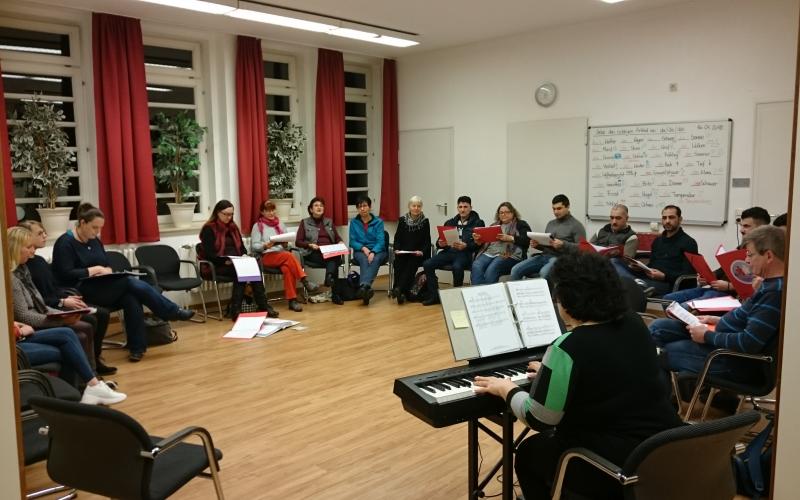 Die Einheimischen Sänger haben sich angeboten, mit den Geflüchteten die Texte der Lieder durchzusprechen, damit diese verstanden werden.